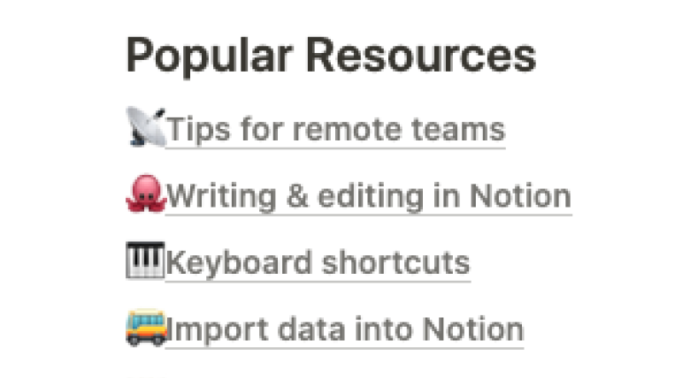 Searchable knowledge base including step-by-step instructions on getting set up in Notion, importing data, editing pages, creating databases, and much more.